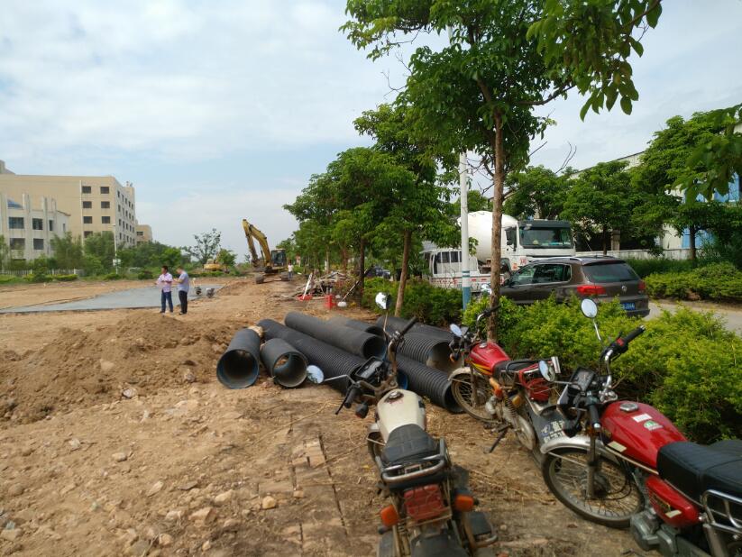 The project is located in Xingang Area, Baijiao Town, Doumen District. The construction comprises the new Logistics Park Central Road, Logistics Park 2nd Road, Logistics Park 3rd Road, Logistics Park 4th Road and the 398,000 m2 park area. The road has an overall length of 2.29 kilometers. The project investment is 115 million yuan.